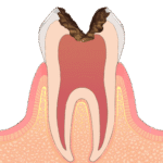 激しい痛みが出やすく、神経の治療(根管治療)が必要になります。
